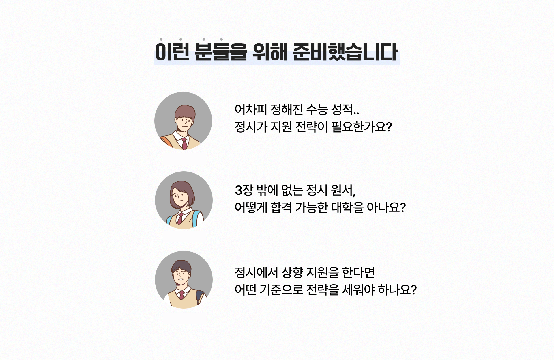 입시의 마지막 관문, 정시! 이번 라이브에서는 2026 정시의 주요 변화사항과 더불어 올해 수능 난이도와 표점에 따라 나에게 유일한 대학 찾는 방법을 함께 알아볼 예정입니다.