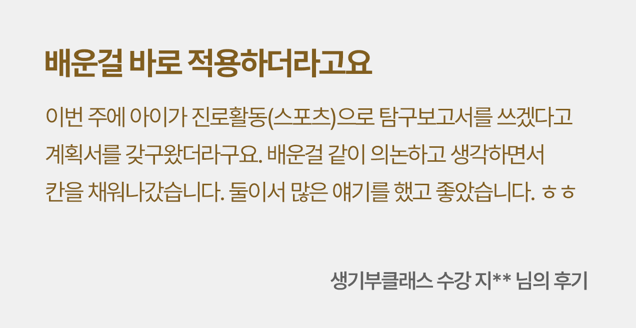 세특·창체 계획, 탐구보고서까지!우리 아이 스스로 '합격 생기부'를 완성합니다.