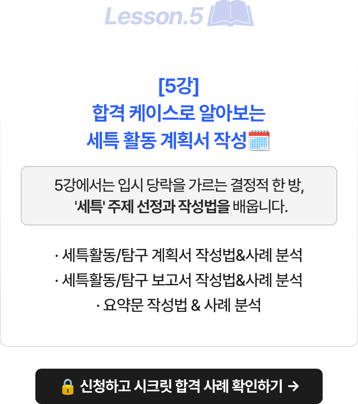 딱 5시간이면우리 아이 생기부도 바뀝니다.지금 바로 시작하세요!