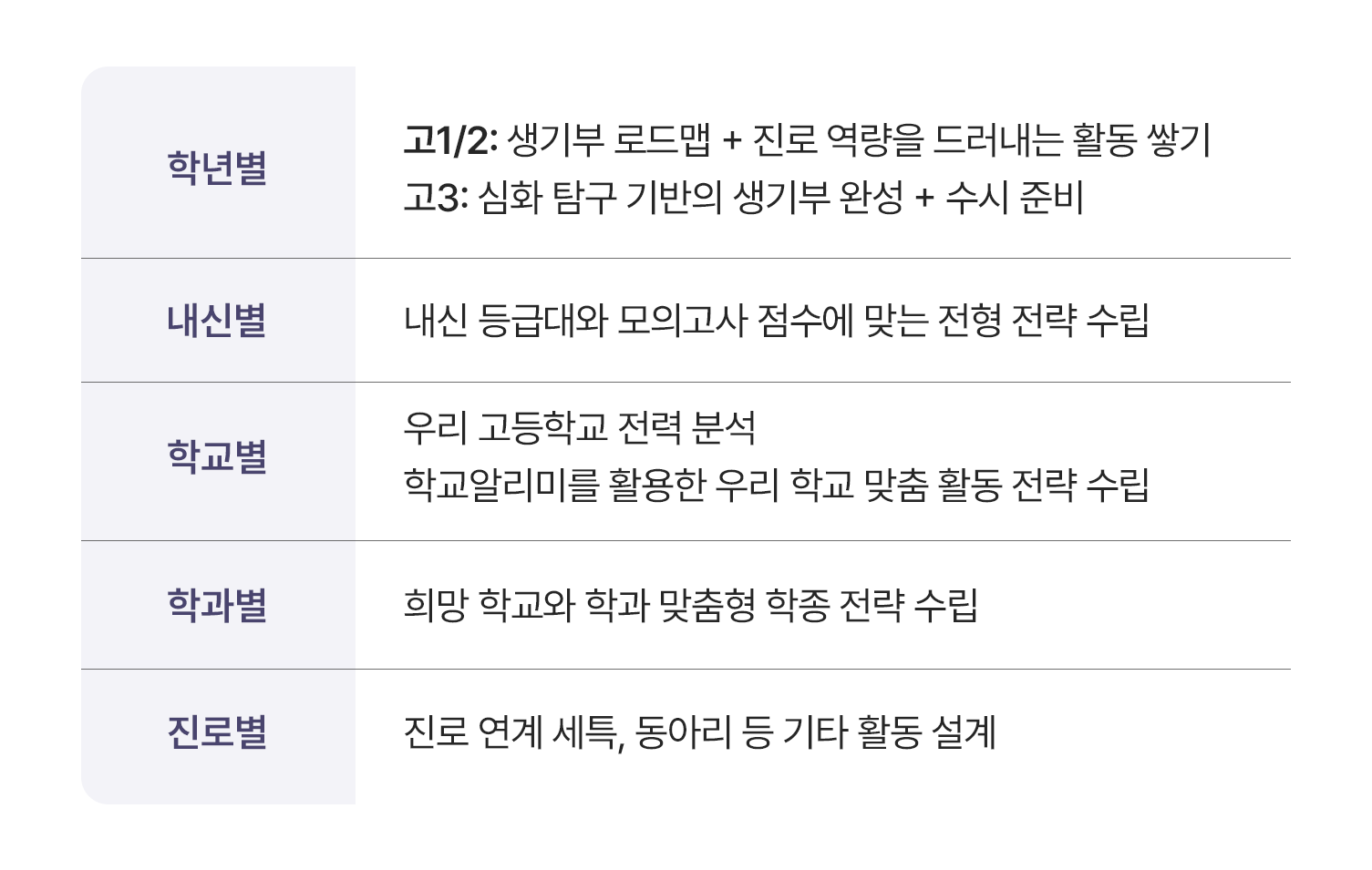 개인/과목 세특 차별화 포인트 점검