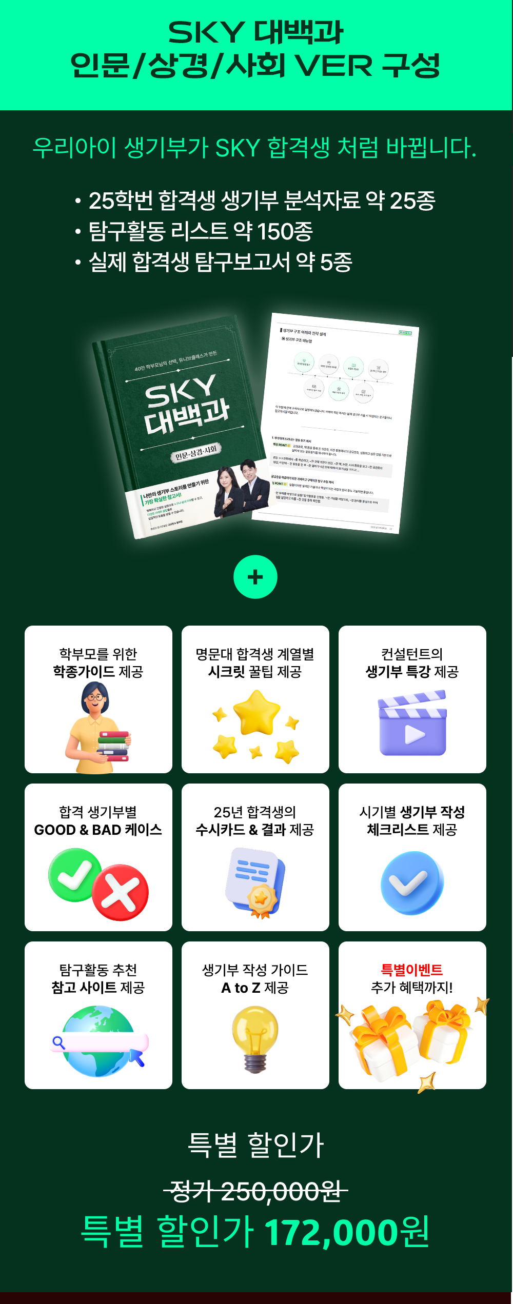[🚨선착순50명 공동구매] SKY 대백과 인문+상경+사회 패키지 학종 속성마스터