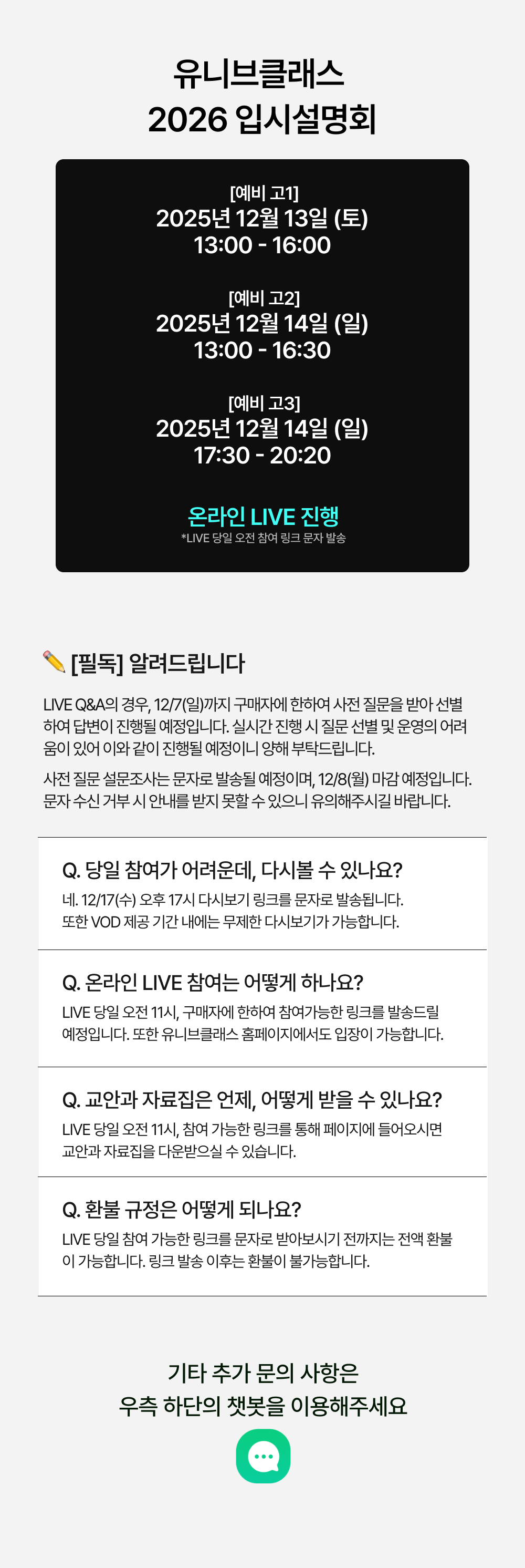 1. 입시설명회 전체 학년 LIVE 참여권