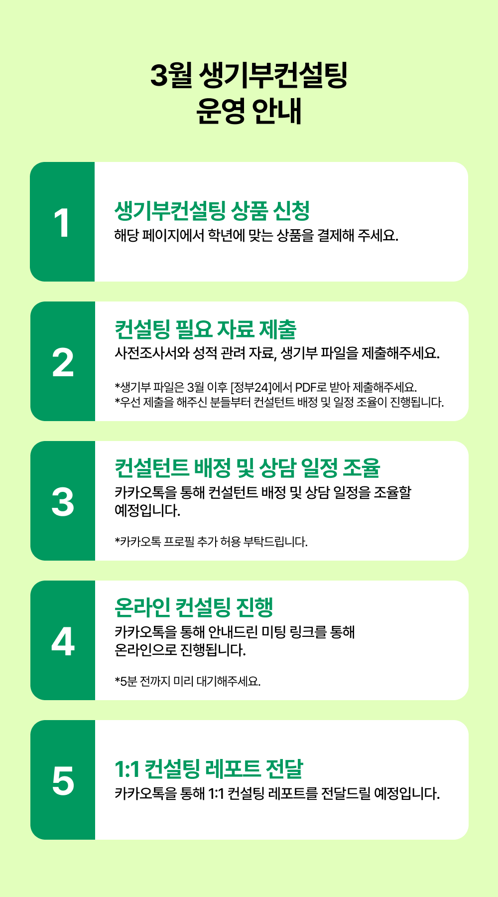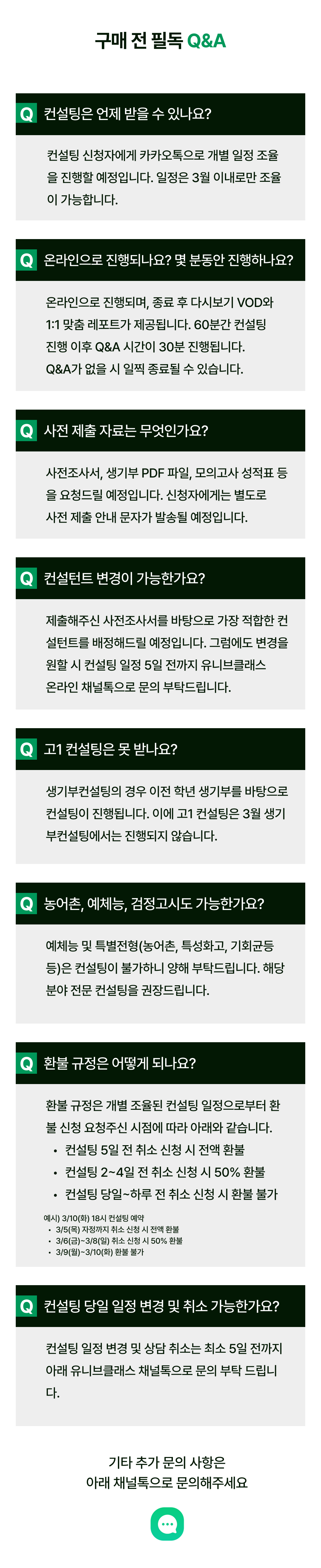 ※생기부컨설팅은 지난 학년 생기부가 있는 2026년 기준 고2,3만 진행이 가능합니다. 고1은 진행하지 않습니다.