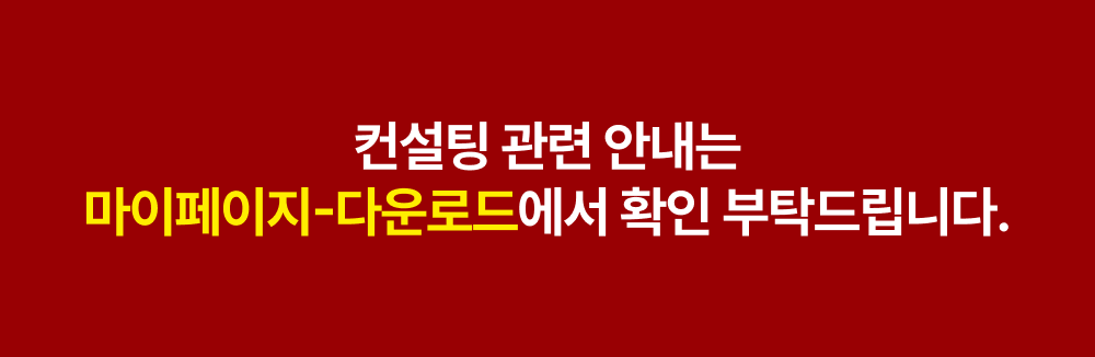 ※일정 조율 및 컨설턴트 배정 관련 내용은 결제 후 마이페이지에서 [다운로드] 부탁드립니다.