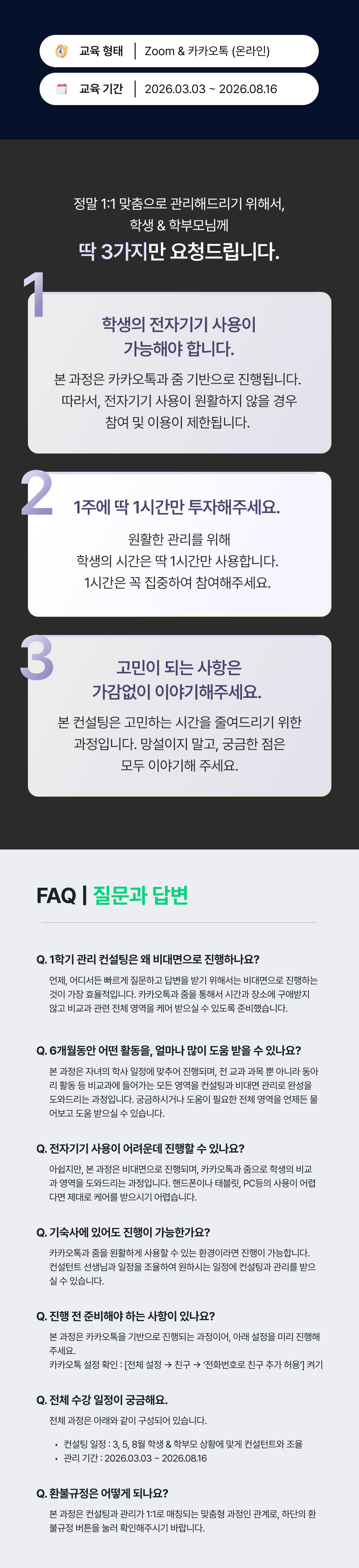1. 본 과정은 3월 3일에 일괄 시작하는 과정입니다. 등록하신 순서대로 순차적으로 안내드릴 예정이오니 참고 부탁드립니다.