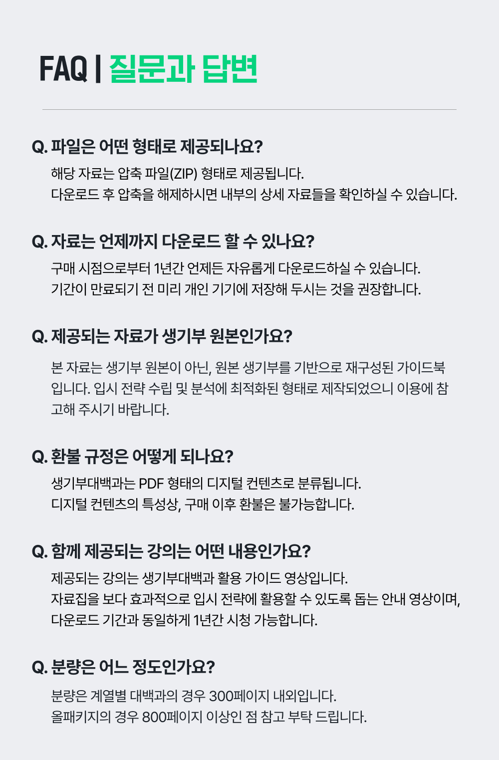 📢 결제 후 자료집 보는 법 📢※ 결제하신 계정으로 로그인 이후 [강의실] > [2026 생기부대백과] 페이지를 통해 자료를 확인하실 수 있습니다.- 모바일 : 좌측 상단 ☰ 선택하여 강의실 선택- PC : 홈페이지 상단 강의실 선택