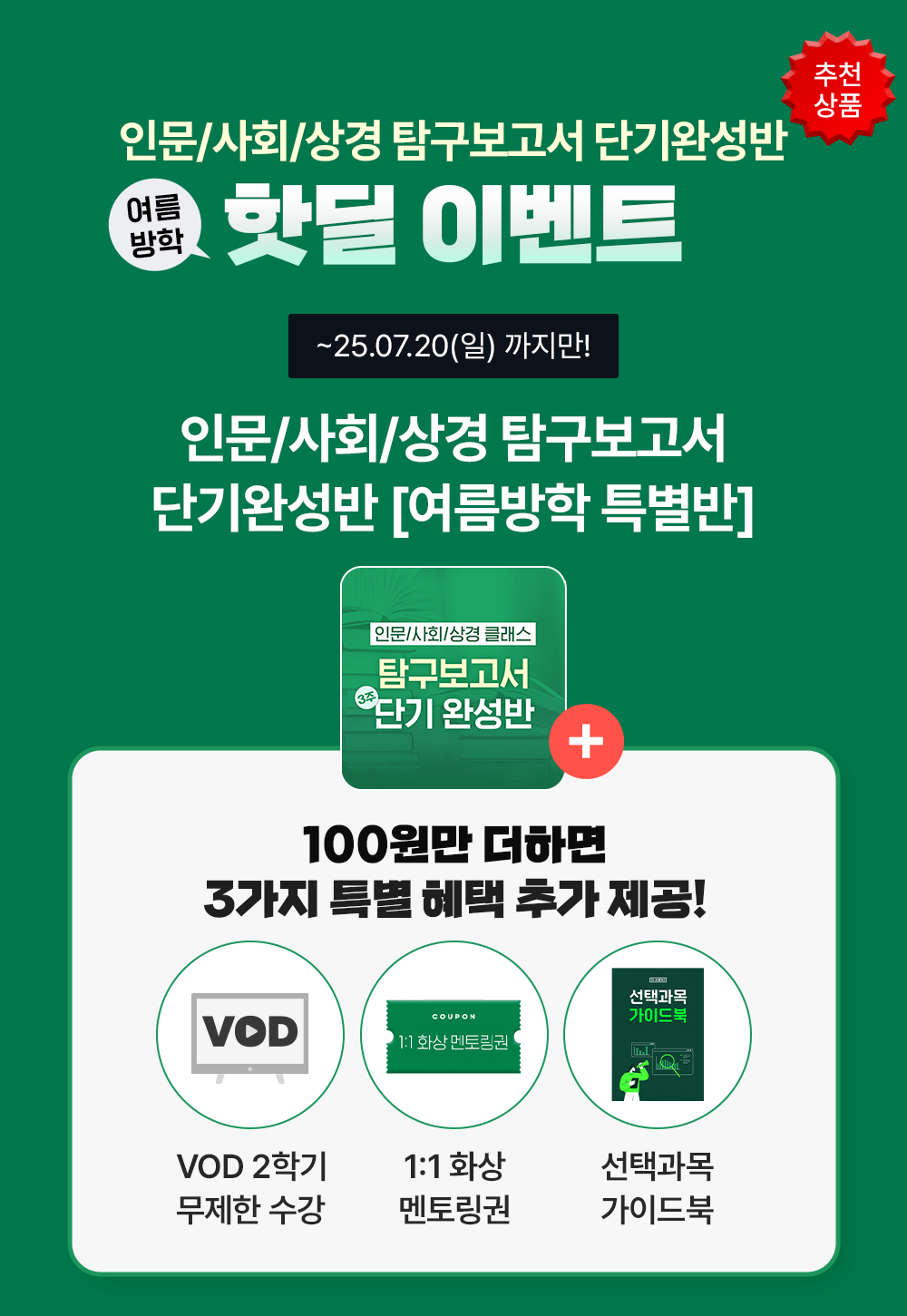 [100원 핫딜] 생기부클래스 Lv.2_탐구보고서 완성반_인문/사회/상경 계열 <여름방학 특별반>