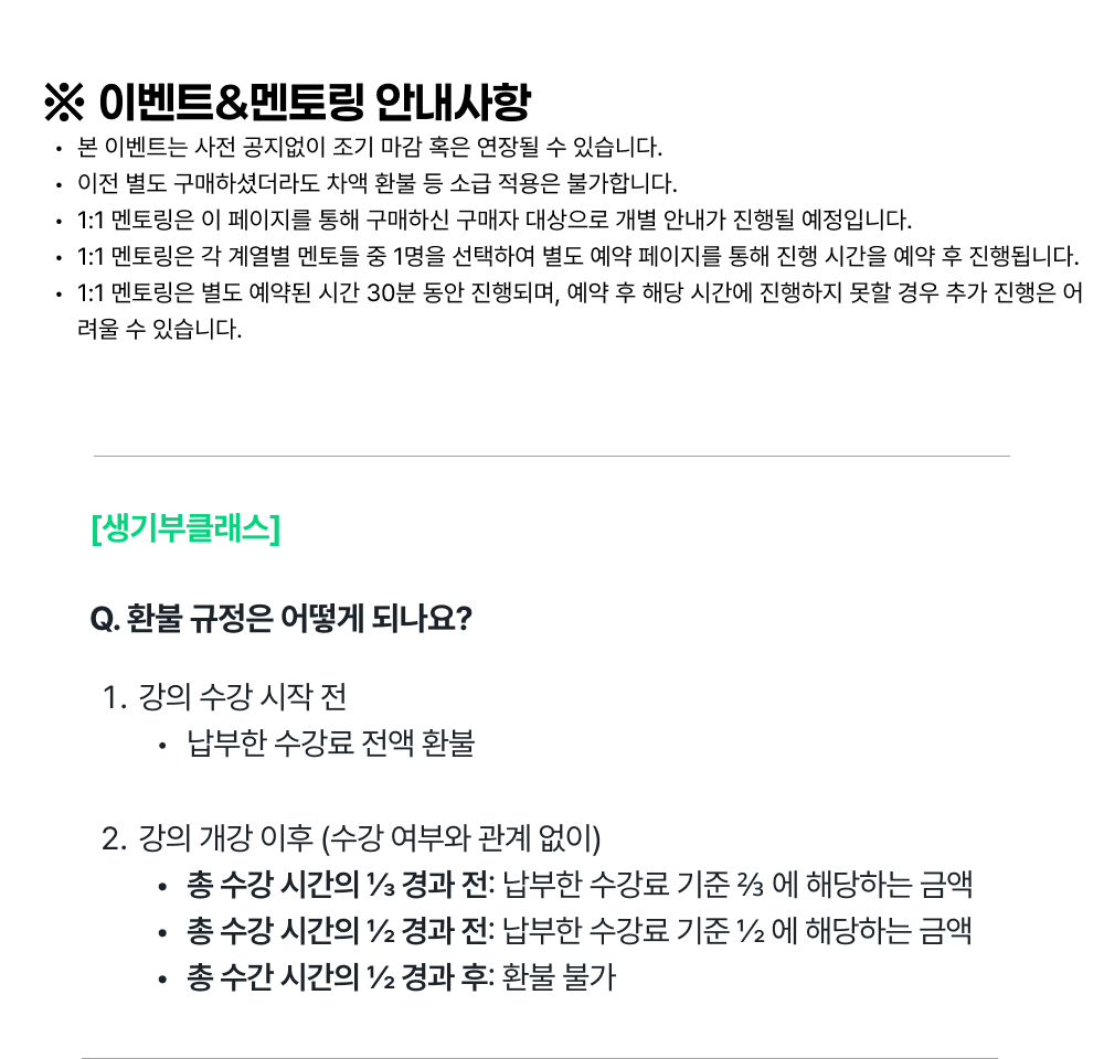 ※ 1:1 멘토링은 생기부클래스 개강 이후 개별 안내가 진행될 예정입니다.